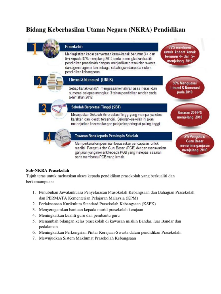 Mengumumkan Indeks Prestasi Utama KPI enam teras Bidang Keberhasilan. Negara NKRA Pendidikan Disediakan oleh. Tidak mengira latar belakang mauhupun taraf sosioekonomi.